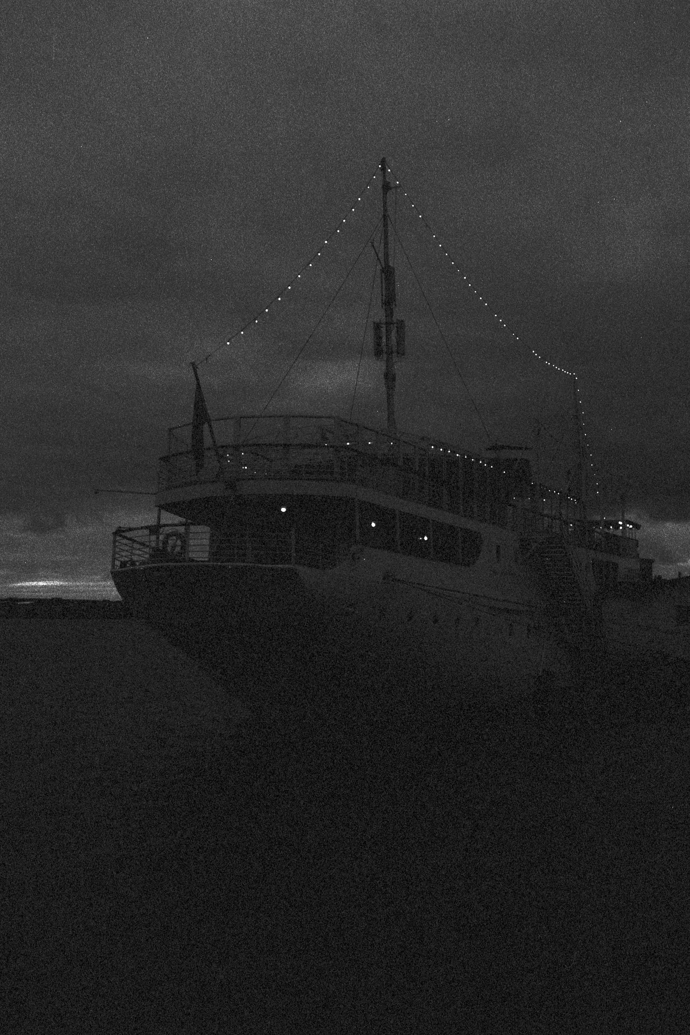 Lama-kelamaan ia merasa mengigil terpuruk dalam omong kosong batin. Sarung yang semula ia gantungkan di leher, kini ia lingkupkan ke tubuhnya. Ia meniti geladak pinggiran kapal yang lompong dengan pikiran yang ribut. Melayang-layang jiwanya melangkah tanpa tujuan bagaikan hantu penunggu laut yang tersesat di kapal asing. Ia berkeliling menuntaskan perkara pertentangan suara hati selagi kapal tunak membelah lautan. Tak ada yang perlu dikhawatirkan, ucapnya mencoba lagi menenangkan. Kemudian ia menjatuhkan punggungnya di kursi besi yang menghadap ke haluan kapal. Rupanya sudah ada beberapa lelaki duduk melamun duluan di situ. Apakah mereka lebih gundah daripada aku, ia bertanya membandingkan diri seperti kebiasaannya yang selalu mengira ia yang paling menderita.